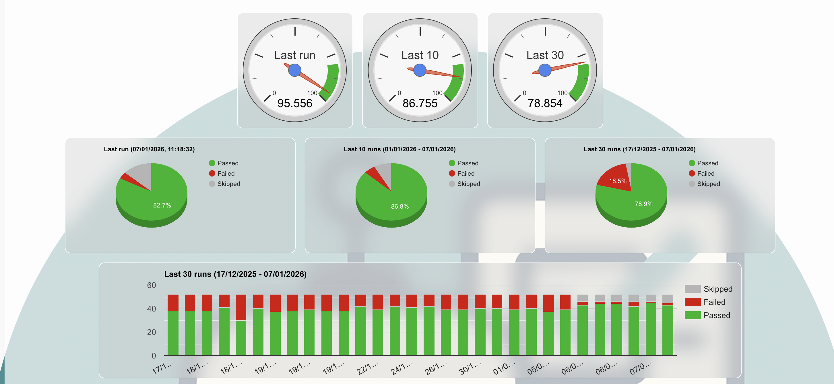 Testcafe is an open-source Node.js tool designed for automated end-to-end web testing. For the purpose of Smart Change Integration test, I have created not only the tests (running on 3 different ITSM instances), but also an automated workflow sending the test results from Github to Azure Node app that saves the results to a database, sends a Teams notification with topline and creates Jira issues assigning them to the responsible developers (notifying them also with an email). On top of it, app's url displays a Dashboard with graphical representation of the last and historical results along with lists of errors and tests that frequently fail.